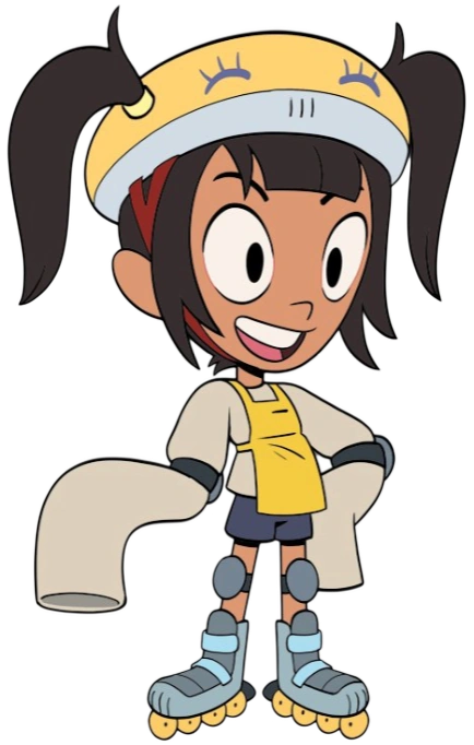 Razor is roughly the same height as Craig of skates, height off of them is unknown. She has dark hair that is put into pigtails that stick out of the holes on her yellow helmet. The hair is tied up by two pale yellow hair bands. The helmet Razor wears is yellow on top, a gray color rimming it, with a periwinkle 'face' painted on it and dark red stripes. She wears a very long sleeved pale yellow shirt under a lemon colored apron, and with this outfit she wears a pair of dark colored shorts. The apron, and helmet is all altered in the episodes, changed to shades of green while the shirt was changed to white. Razor wears a pair of light blue skates with darker color of buckles instead of laces. The wheels on her shoes are a yellow, which is too later changed in the episodes she premieres in to a green instead. The sleeves of her top covers her hands completely, almost reaching the floor.